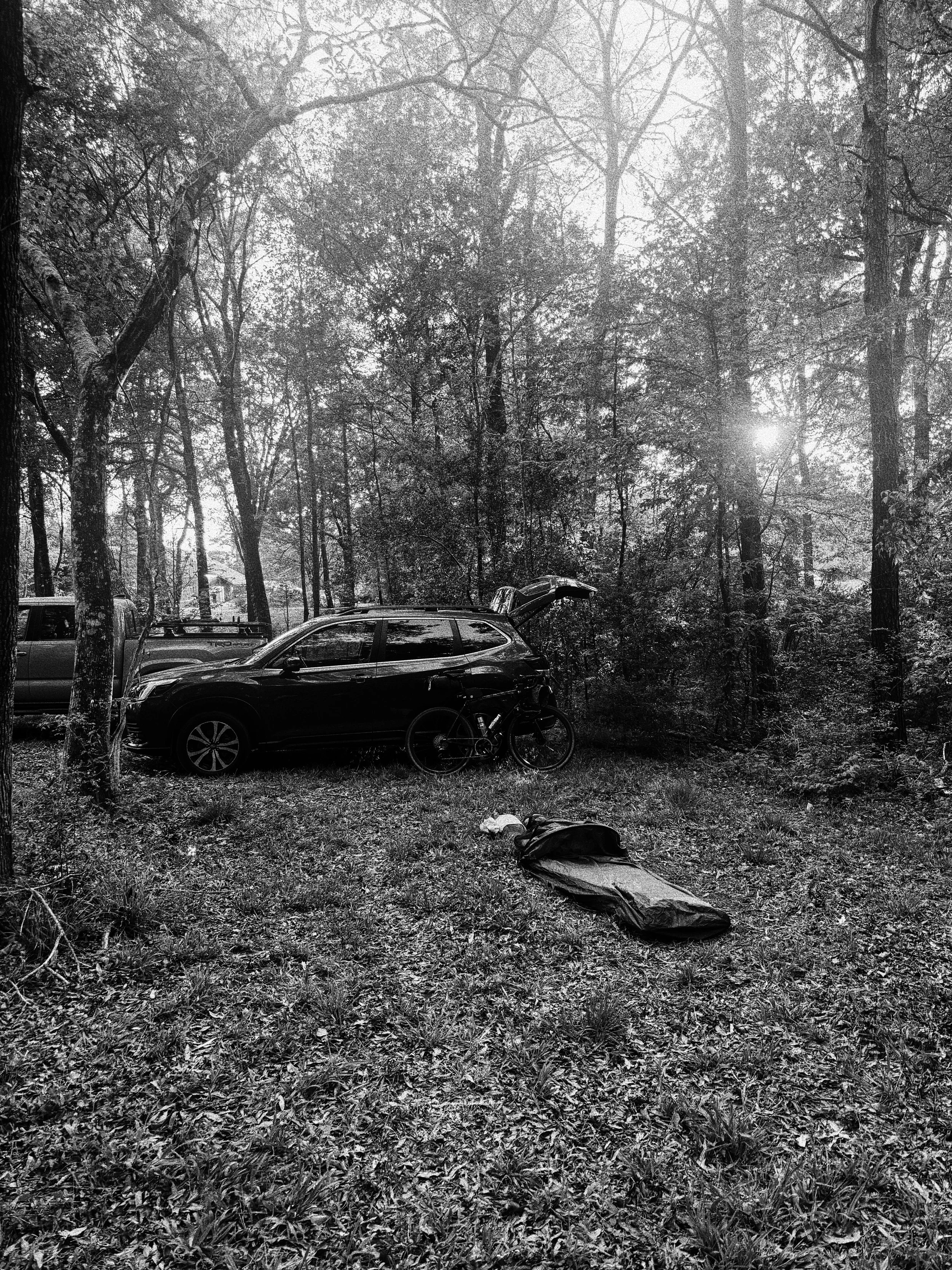 The mosquitoes were out in full force in the swampy East Texas forest, so I laid out my bivy and sweated through the night next to the car, wondering what in the world i was doing.
